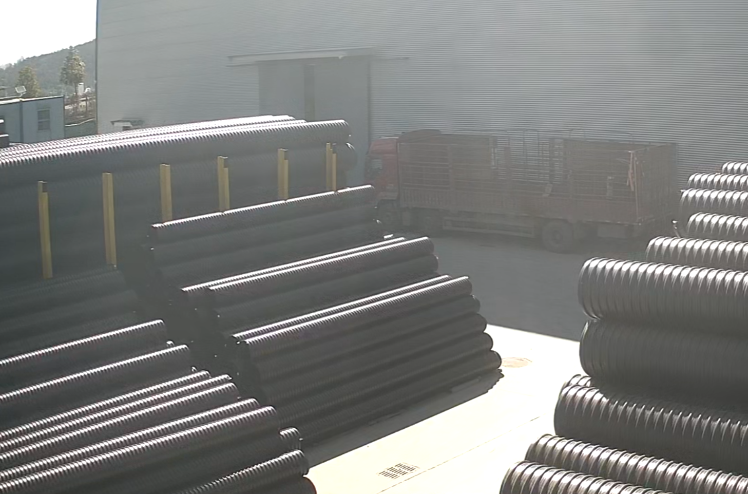 排水管生產(chǎn)線(xiàn)8條,生產(chǎn)品種有HDPE雙壁波紋管、鋼帶增強(qiáng)聚乙烯(PE)螺旋波紋管、HDPE中空壁纏繞管;